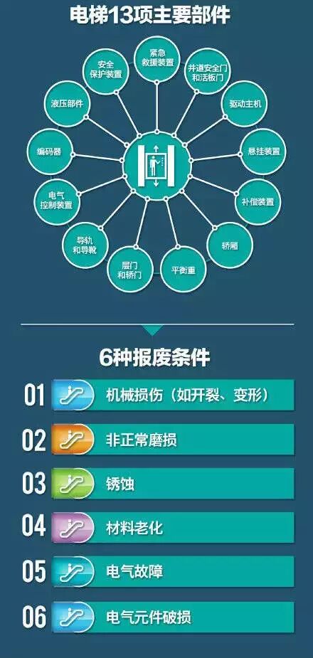 中国全国电梯标准化技术委员会秘书长陈凤旺说,电梯是模块化设计的机电一体化产品。由于受设计制造、安装、维护保养和使用等多种因素的影响,电梯整机使用寿命存在很大差异,难以制定电梯整机的判废标准。因此,通过制定电梯主要部件报废技术条件,进行报废与否判定,再决定电梯整机是否需要报废,是提高在用电梯安全性的可行途径,并兼顾了经济性和科学性。