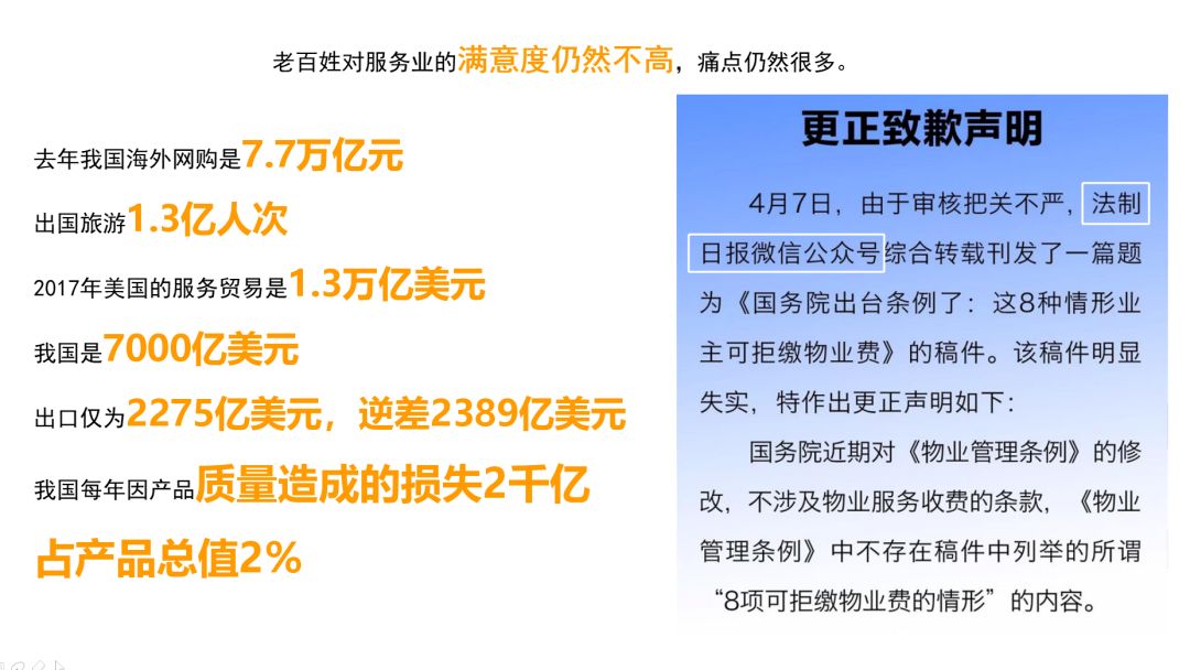 二是,老百姓对服务业的满意度不高,痛点仍然很多。
