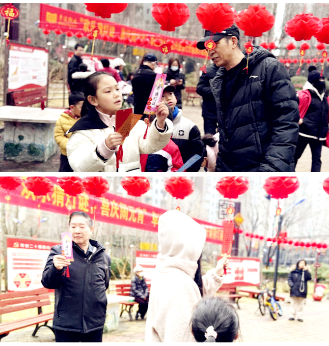 活动现场,业主家人们纷纷化身“最强大脑”,有的业主驻足思索、两两讨论,小朋友们踊跃抢答、欢呼雀跃,猜对谜底的喜悦声此起彼伏,现场热闹非凡。大家在传统民俗中感受节日乐趣,在轻松互动中拉近邻里距离。